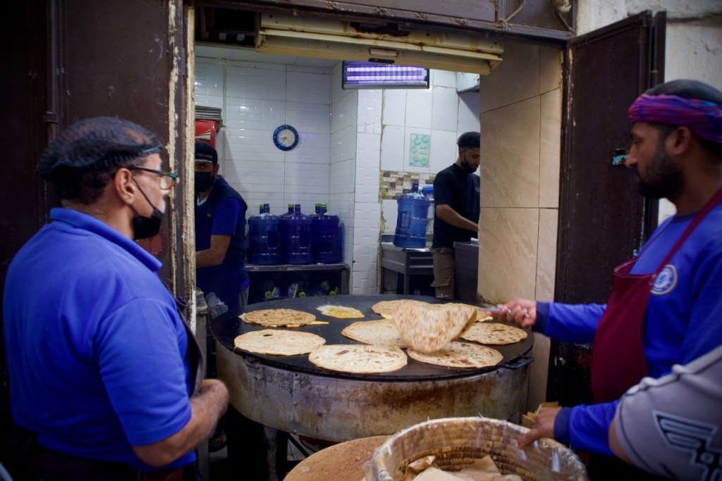 Among many things, Al Ula is well known for being part of the Dadanite civilisation. The tour takes us to the famous Lion Tombs as well as Jabal Ikmah, an “open-air library” with a rare collection of ancient inscriptions set in a stunning desert canyon. I meet Awwadh, a toxicologist, and his friend, Mohammed, a pilot, on their camping adventure. Together, we visit Old Al Ula by night, another development project, with cafe and music, shops and restaurants, and, like in Diriyah in Riyadh, ruins in stunning light.