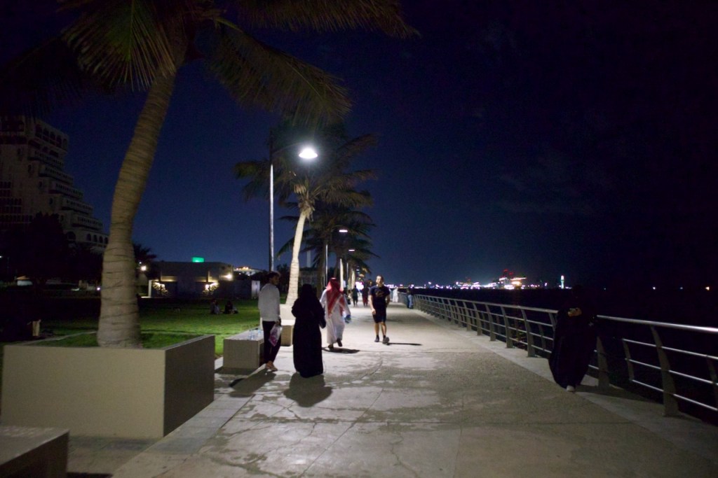 I hop on the bus to Farasan center and meet Ismael, a globetrotter from Madrid. We find a driver who agrees to show us his beloved island, or so we believe, being half lost in translation despite Ismael’s impressive Arabic. First stop: a park supposedly teeming with wild life. I have never seen an open desert plain as devoid of life as this, but the driver urges us to look. Here, here! he points to a gazelle’s legs. We spot a grand total of one and a half gazelle after an hour and become impatient to move on to explore more the heritage village and the shoreline. Petrol, petrol! the driver screams. He has no more gas apparently and needs to make it back to town. We have not even visited the fort or the mangroves, let alone snorkel. I have learned to go with the flow, to take what is being given. Farasan seems very oversold to us. The Maldives it clearly is not, and I decide to change my plan to continue on to Jeddah, my last stop. Our adventurous day is not over yet. Just as Ismael and I sit down to dinner back in Jizan, a fire breaks out in the very kitchen serving us. Closed! closed, we are kicked out just when we are ready to order baba ganoush, nan, biryani, and fish. Thick columns of black smoke billow out and we hurry our steps, lugging our packs, to find a nearby grill. Neither of us has eaten any meal for the past twenty-four hours. The food is bad in Farasan, the locals agree. Tough life of backpackers, Ismael says, smilingly. What a Red Sea (mis)adventure!