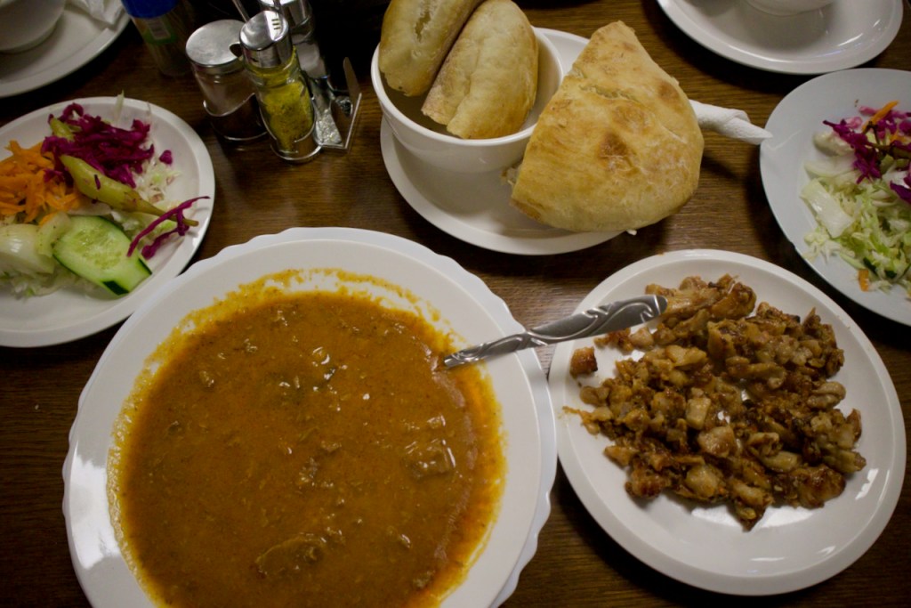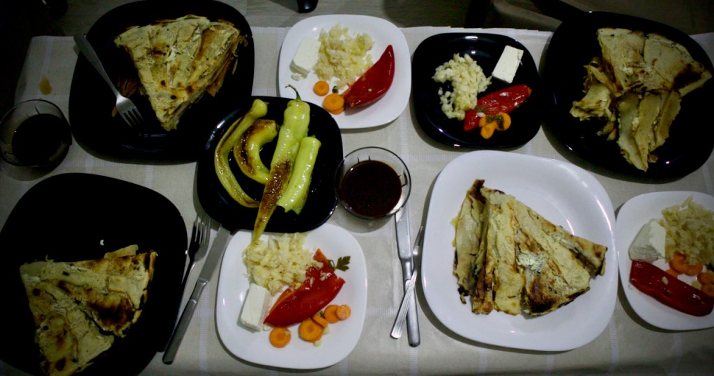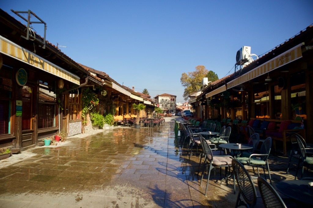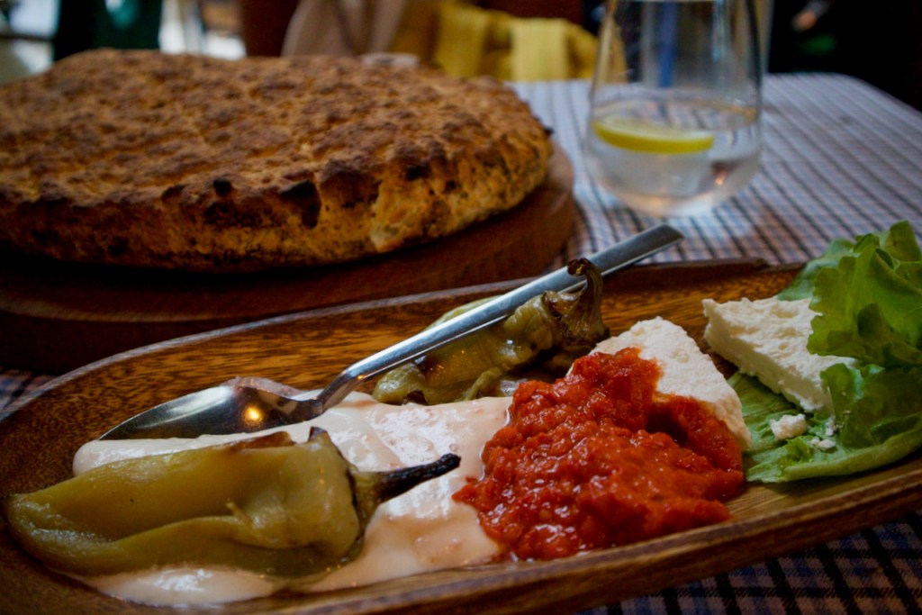 For a month, I roam from one old bazaar to another, explore marble caves and steep canyons, marvel at UNESCO monasteries and Roman ruins, and enjoy macchiatto with rakia, watching autumn leaves turn to first snow. Never have I enjoyed a tastier blend of Turkish, Albanian, and Balkan cuisines and stuffed myself with more generous portions of flija – the thickest pancake in the world – piping hot bureks, smoky kebabs, spicy stuffed peppers, heartwarming gjyveq/goulash, and highly edible baklava and trileqe/Albanian three-milk cake, all washed down with endless rounds of ultra-sweet çaj rusi/Russian tea. What an enriching theine- and caffeine-filled and calorie-ful adventure!