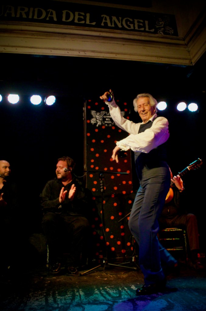 Strolling in the city centre, I see a big poster of Maestro for his upcoming homage show. My first few calls to the school go unanswered until someone finally says,There’s a death in the family. Ven mañana a las 7! I knock on the door of 5 Calle Castellanos, not knowing if Maestro is still among us, only to see the legend himself open the door through which I leap into the Flamenco universe…