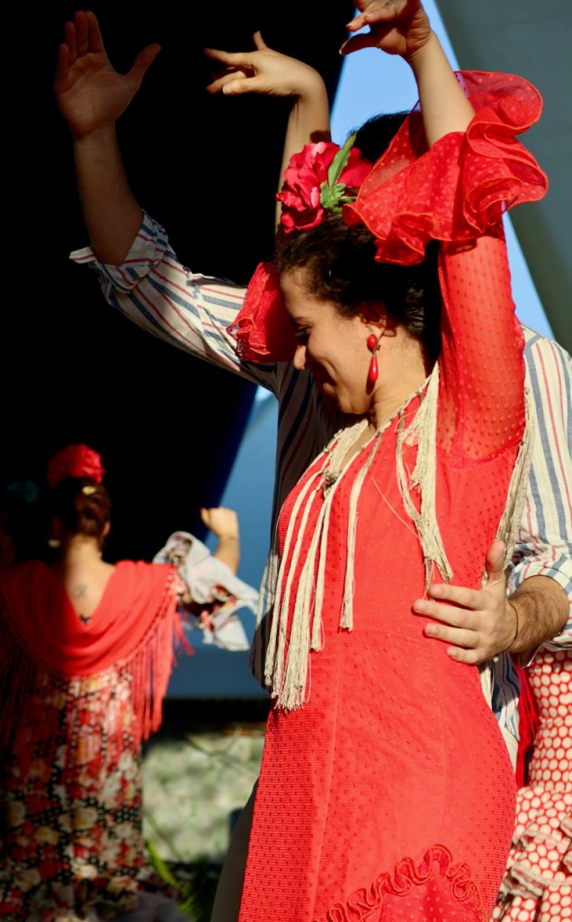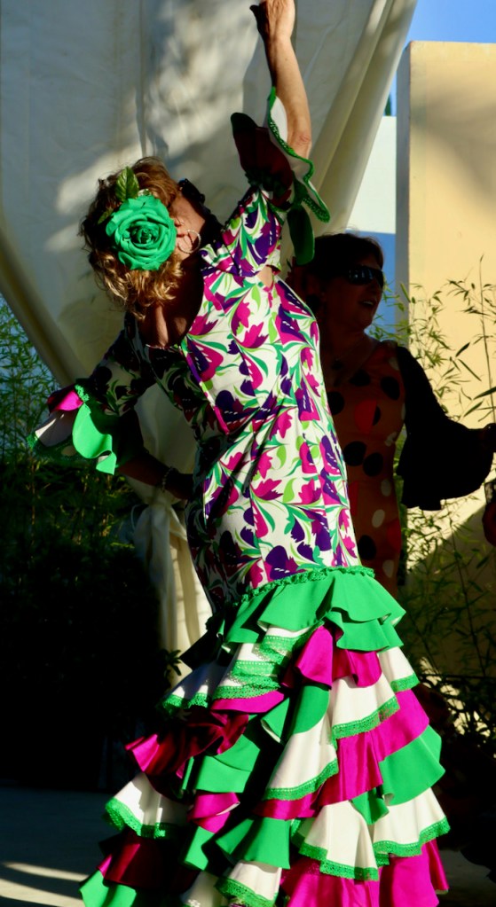 I spend hours in a pavilion listening to Sevillana songs in full blast, photographing and dancing, watching the soft setting sun cast exquisite shadows on elegant movements. What an unforgettable experience!